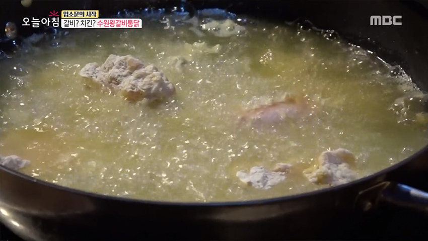 3. 튀긴 치킨을 소스에 넣고 3분간 푹 졸여주면 맛있는 수원 왕갈비 통닭이 완성!