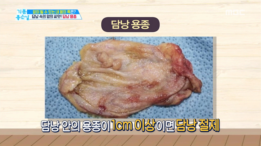 2. 담날의 용종은 대부분 콜레스테롤 용종으로 암으로 발전하지는 않지만 용종이 1cm 이상이면 담낭을 절제하는 것이 좋다
