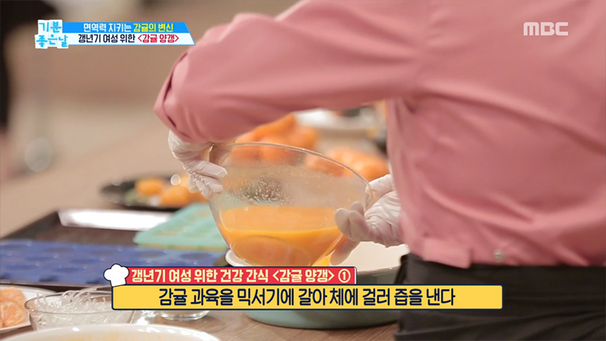 1. 감귤 과육을 믹서기에 갈아 체에 걸러 즙을 낸다.
