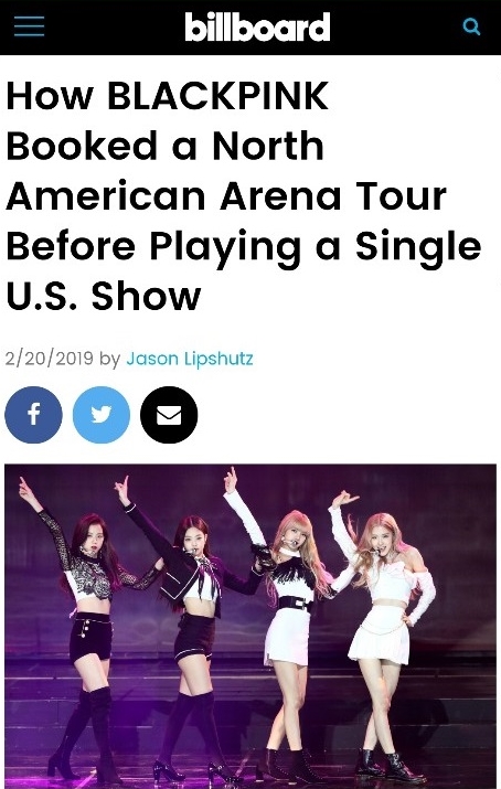 미국 빌보드는 20일(현지시간) '블랙핑크는 어떻게 단 한번의 미국 공연 없이 북미 아레나 투어를 성사시켰나(How BLACKPINK Booked a North American Arena Tour Before Playing a Single U.S. Show)'라는 제목으로 블랙핑크를 집중 조명했다.