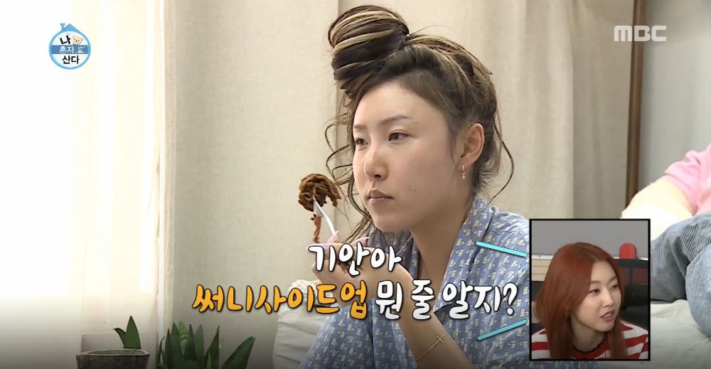 이때 화사가 TV에서 나온 ‘써니 사이드업’ 소리에 관심을 보였다. 이 모습을 스튜디오에서 영상으로 보던 한혜진이 “기안아, 써니 사이드업이 뭔지 알지?”라고 물었다. 이에 기안84가 “영화예요?”라고 말해 웃음을 안겼다.