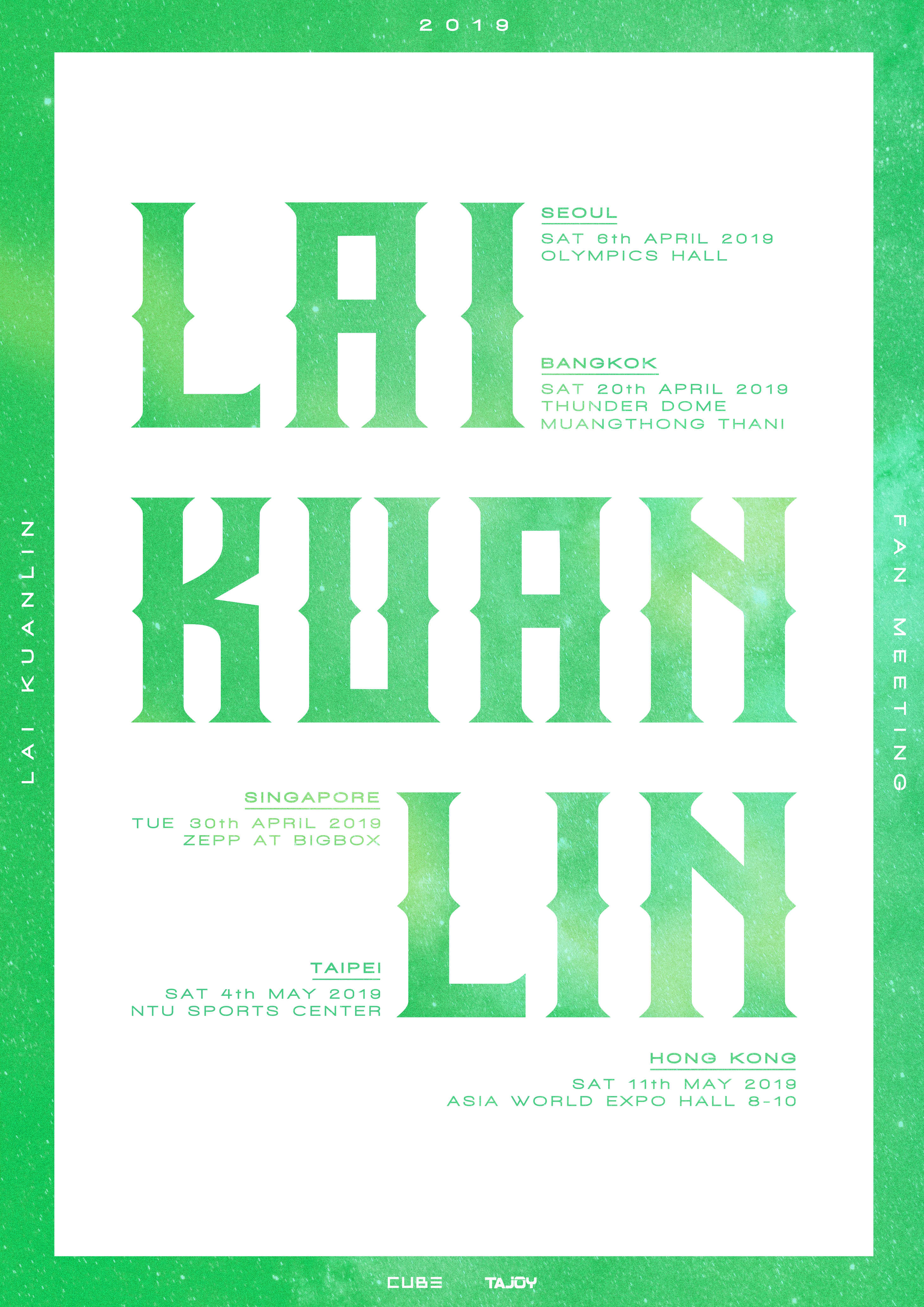 라이관린은 서울을 시작으로 4월 20일 태국 방콕, 4월 30일 싱가포르, 5월 4일 대만, 5월 11일 홍콩까지 총 5개 도시 팬미팅 개최를 확정 지었으나 각국의 팬미팅 요청이 쇄도하고 있어 팬미팅 투어 개최 국가는 점점 늘어날 것으로 보인다.