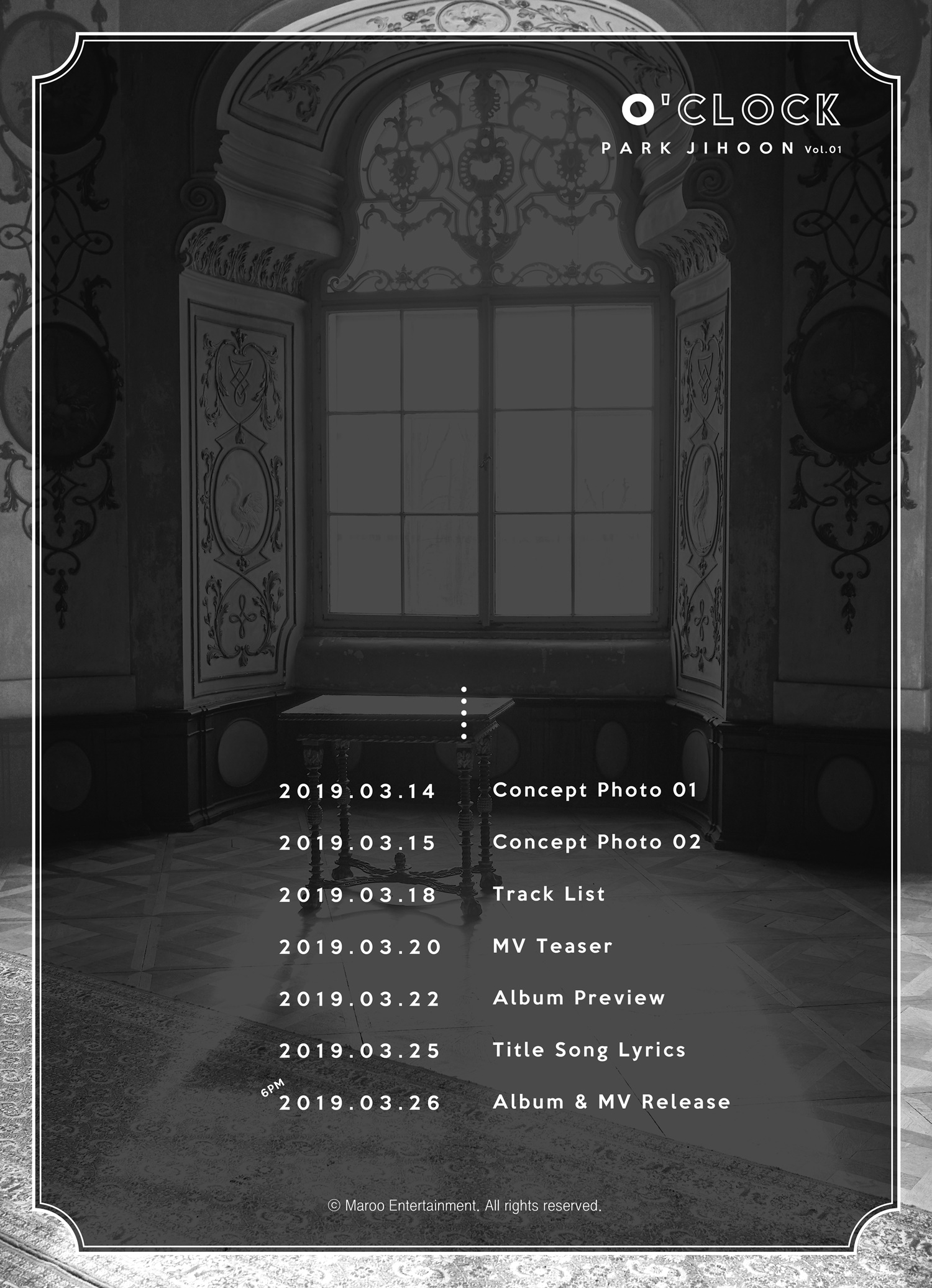 이어 오는 14일과 15일 양일간 새 앨범 콘셉트 포토가 잇따라 공개되며, 이어 트랙리스트, 뮤직비디오 티저, 앨범 프리뷰, 타이틀곡 가사 등이 순차적으로 오픈되어 발매 전까지 박지훈의 신보를 기다려온 팬들의 기대와 호기심을 하나씩 충족시킬 예정이다.