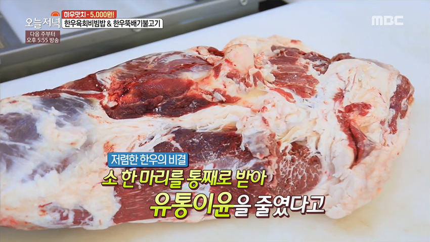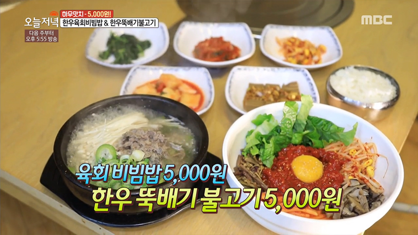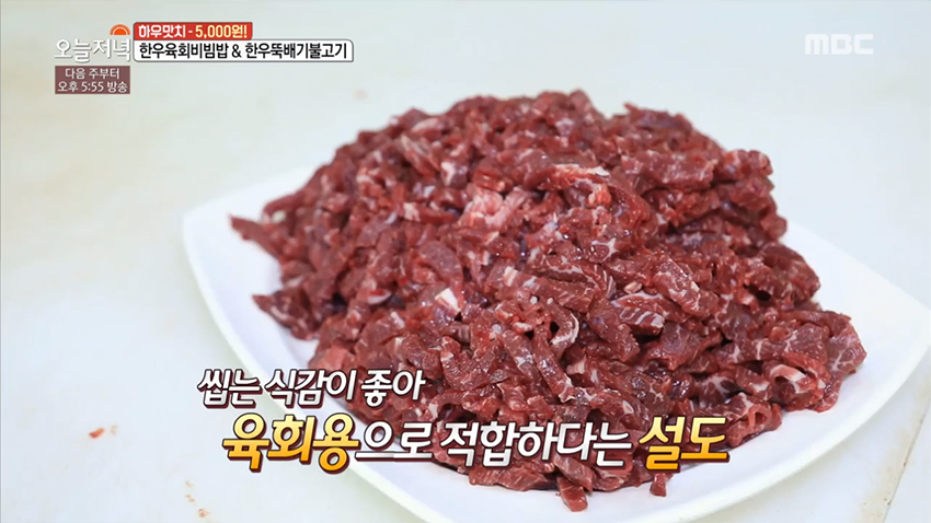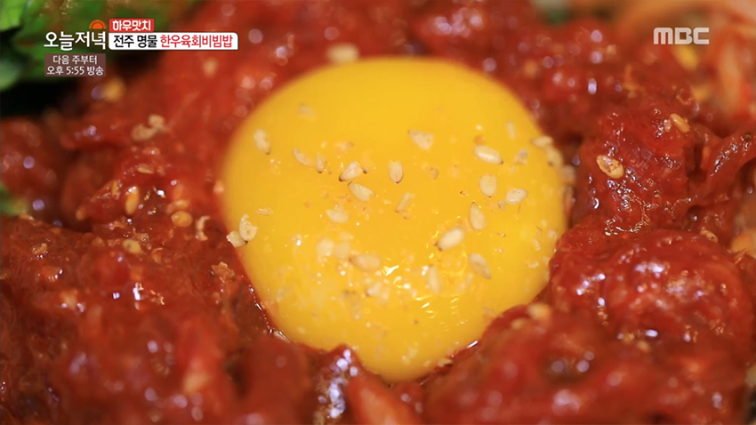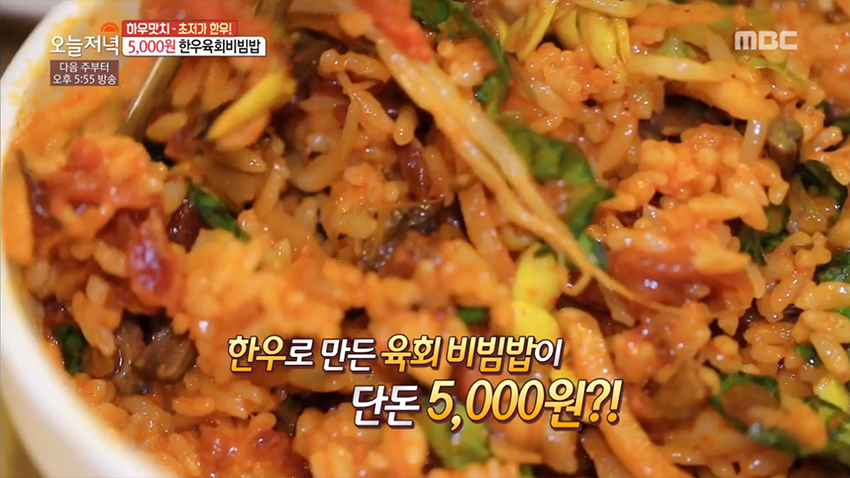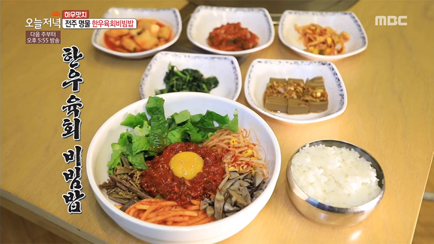 감칠맛 나는 양념과 따뜻한 밥과 육회의 만남, '한우 육회 비빔밥'이 2019년 3월 14일 생방송 오늘 저녁에 소개되었다.
