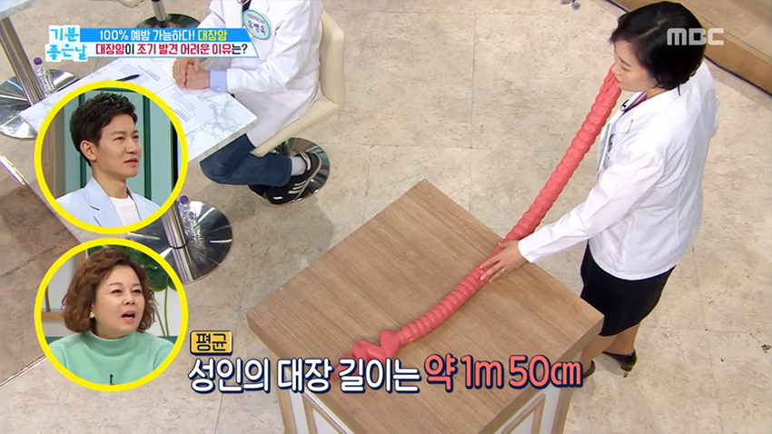 1. 평균 성인의 대장 길이는 약 1m 50cm이다.