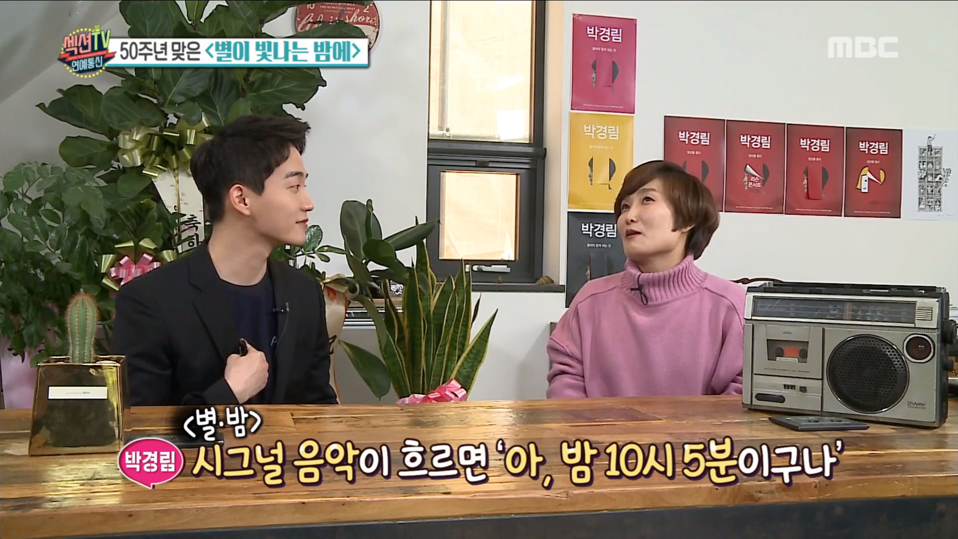 박경림은 “시그널이 흐르면 ‘아 밤 10시 5분이구나. 아 별밤이구나.’하고 다 알게 되는. 너무 좋네요”라며 50주년을 맞은 ‘별이 빛나는 밤에’의 추억을 되새기기도 했다. 또한 그녀는 이문세의 ‘별이 빛나는 밤에’를 듣고 자랐다고 공개하며 “그 당시에 이문세의 별이 빛나는 밤에는 안 들으면 안 되는! 들어야 다음 날 학교가서 애들이랑 이야기 할 수 있는” 존재였다고 전하기도 했다. 박경림은 처음 DJ를 하게 됐을 때 “언니 주파수가 안 맞아요”라는 사연을 많이 들었다고 공개해 웃음을 자아내게 만들었다.