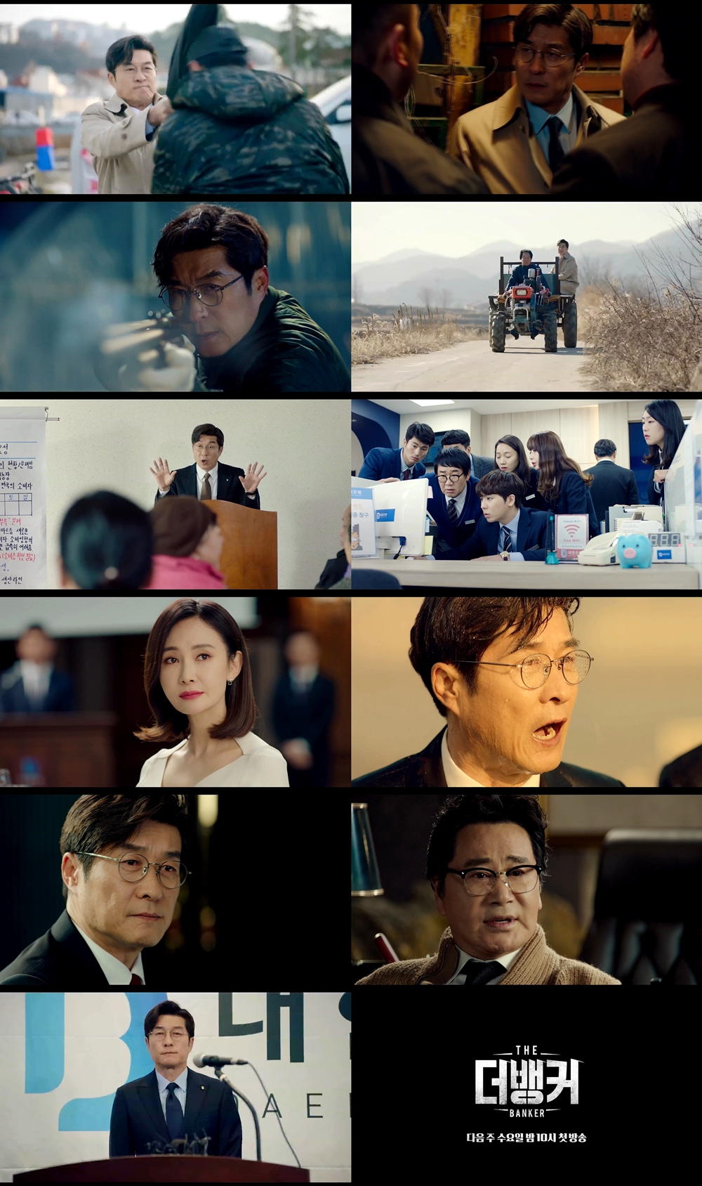 '더 뱅커'는 대한은행 대기발령 1순위 지점장 노대호가 뜻밖에 본점의 감사로 승진해 '능력치 만렙' 감사실 요원들과 함께 조직의 부정부패 사건들을 파헤치는 금융 오피스 수사극. 김상중, 채시라, 유동근 등 3인의 대한민국 대표 연기대상 수상 배우들이 의기투합하고 안우연, 신도현, 차인하 등 특급 신인 배우들이 합류해 기대를 높인다.