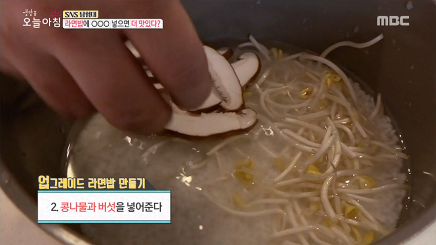 2. 콩나물과 버섯을 넣어준다.