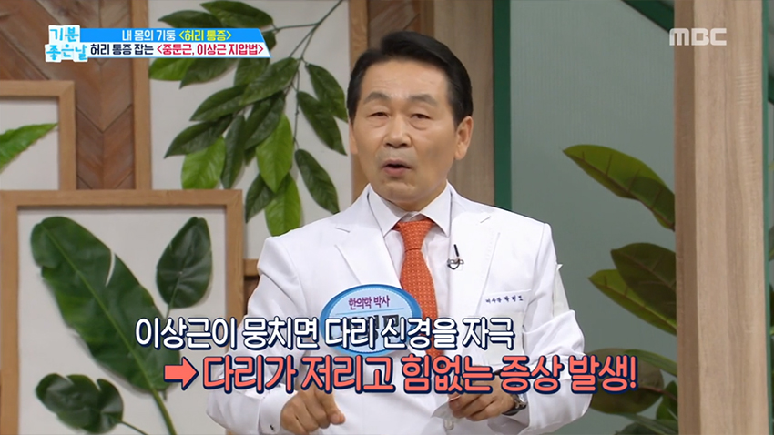 2. 이상근이 뭉치면 다리 신경을 자극하여 다리가 저리고 힘없는 증상이 발생한다.