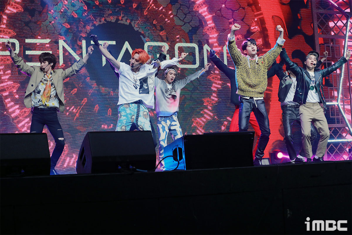 이날 쇼케이스에서 펜타곤이 무대를 하고 있다.