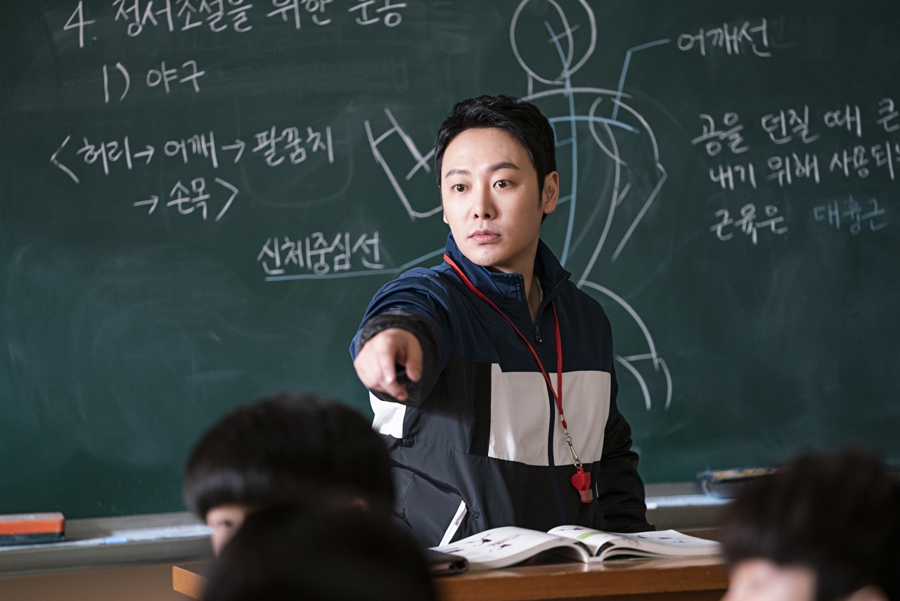 이 가운데 공개된 스틸은 왕년에 유도선수 출신 체육교사로 근무하던 김동욱과 위풍당당한 대한민국 공무원인 근로감독관이 된 김동욱의 현재 모습이 담겨있어 시선을 사로잡는다. 먼저 첫 번째 스틸은 과거 전설의 조장풍으로 불리며 고등학교 체육교사로 이름을 날리던 그 시절 김동욱의 모습을 담아냈다. 체육 교사답게 운동복을 입고 칠판 앞에서 범상치 않은 아우라를 풍기고 있는 김동욱의 포스는 왜 그가 ‘전설의 조장풍’이라는 별명을 얻게 된 것인지 한껏 궁금증을 자아낸다.