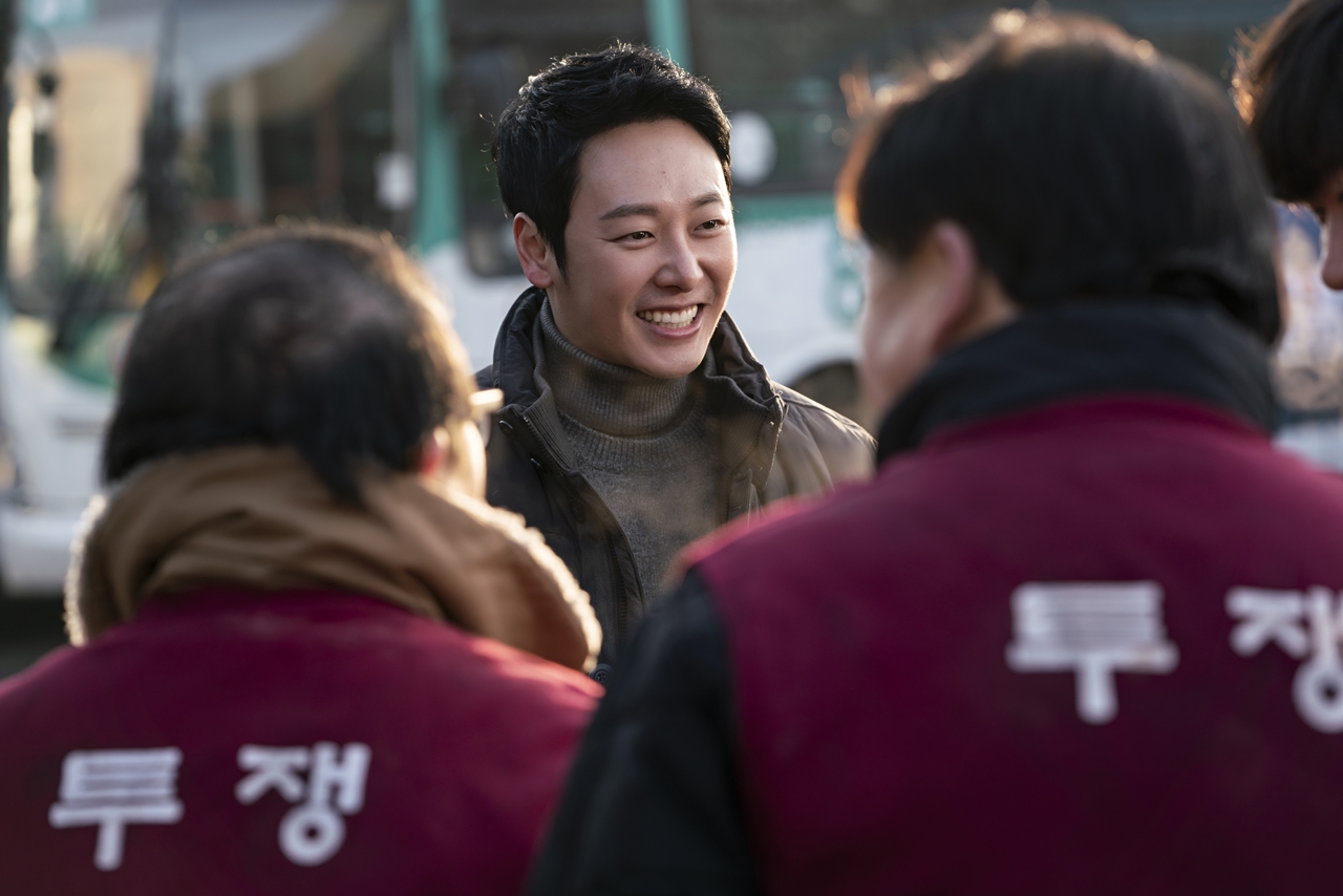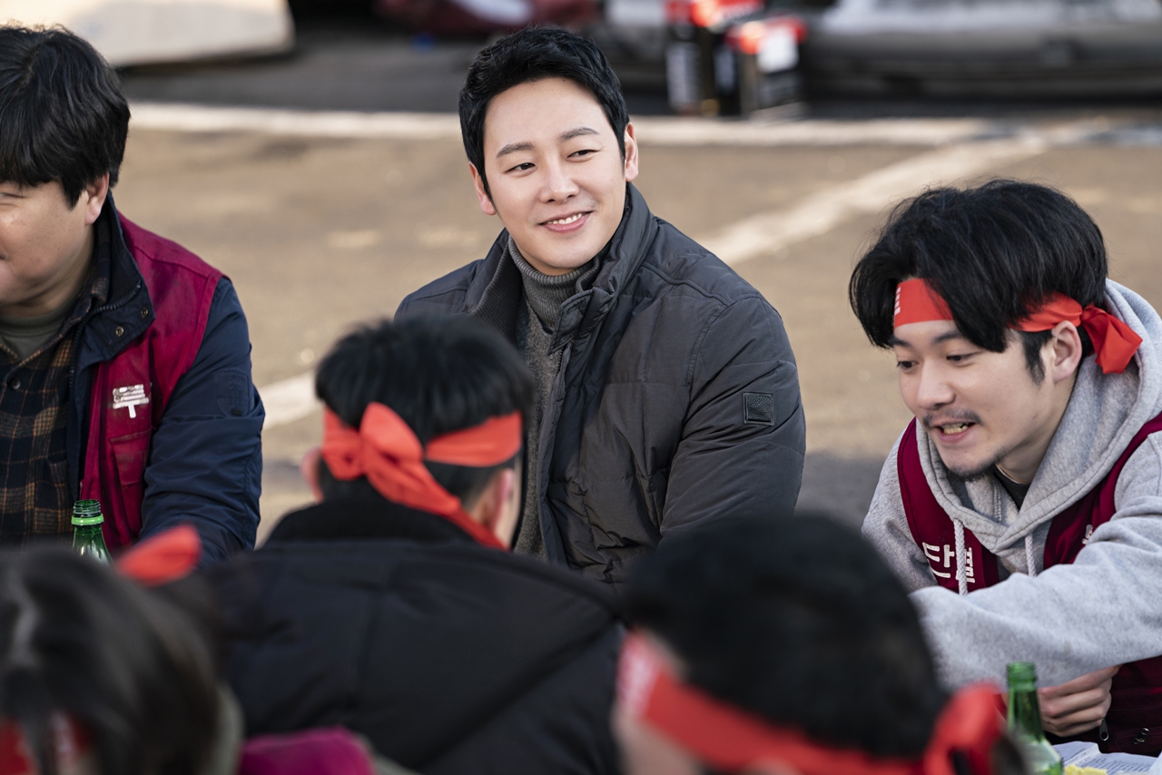 이어 또 다른 스틸에는 더 이상 체육교사가 아닌 6년 차 공무원이자 근로감독관으로 열일을 하고 있는 김동욱의 모습을 엿볼 수 있다. 생계의 최전선에 내몰려 어쩔 수 없이 노조 투쟁을 벌이는 근로자들과 함께 어울리고 있는 김동욱의 밝은 표정과 특유의 해맑은 미소가 눈길을 끌고 있는 것. 이는 극 중에서 김동욱이 복지부동, 무사안일을 최우선으로 하는 것이 아닌, 사회의 악덕 갑질에 억울하게 당한 을들의 아픔을 진심으로 이해하는 근로감독관으로서 어떤 활약을 펼치게 될 것인지, 벌써부터 기대를 모은다.