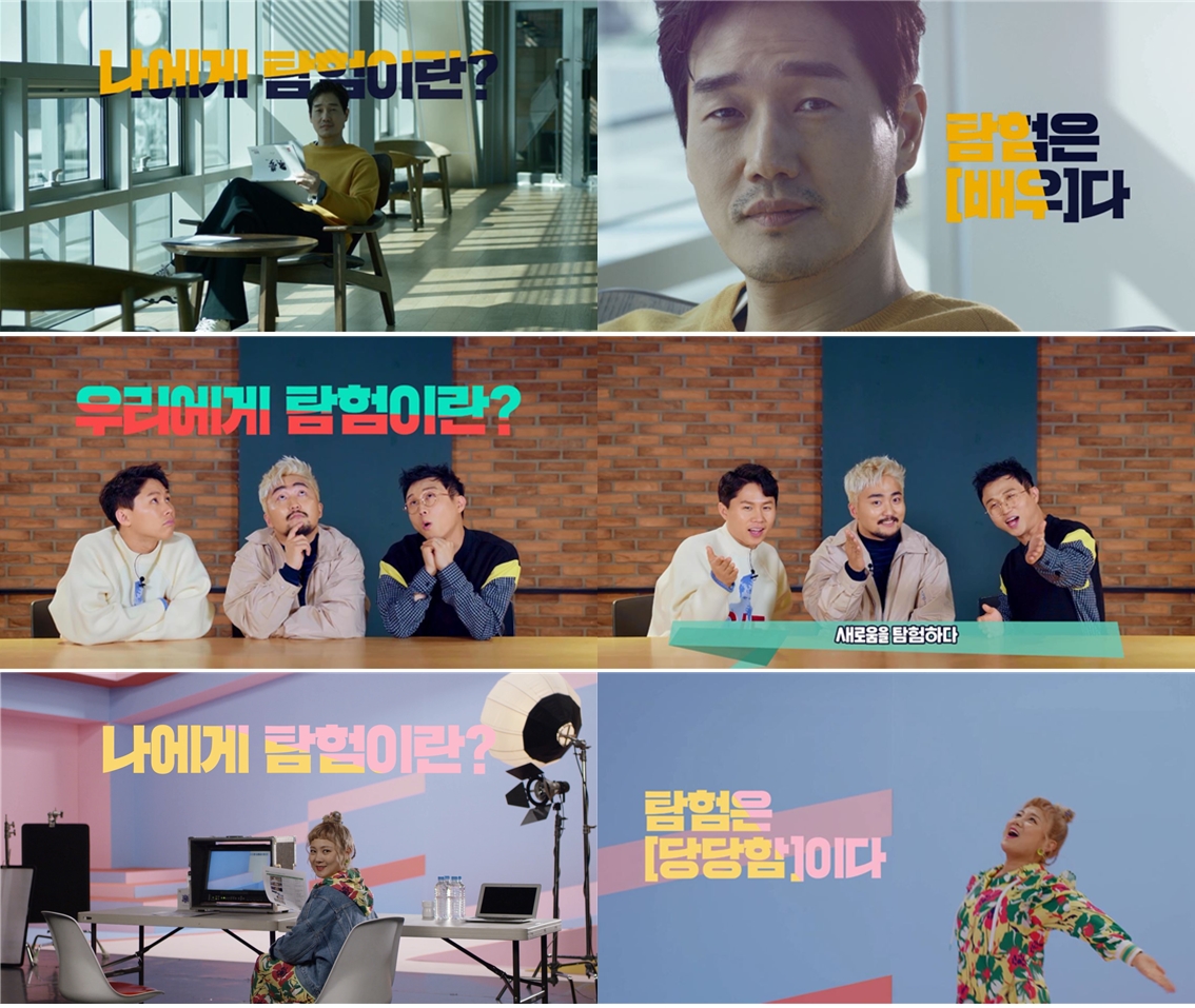 유지태는 ‘나에게 탐험이란?’에 대한 질문에 다양한 작품을 통해 그 인물이 되어 살아보는 ‘탐험은 (배움이고) 배우다’라는 대답을, ‘전지적 참견 시점’팀은 ‘탐험’ 이행시를 지어보며 유쾌하고 재밌는 일상 탐험을 은유적으로 전달하고, 국민 예능인 박나래는 남들 눈치안보고 거침없이 해보는 ‘당당한 도전’이라고 말한다.