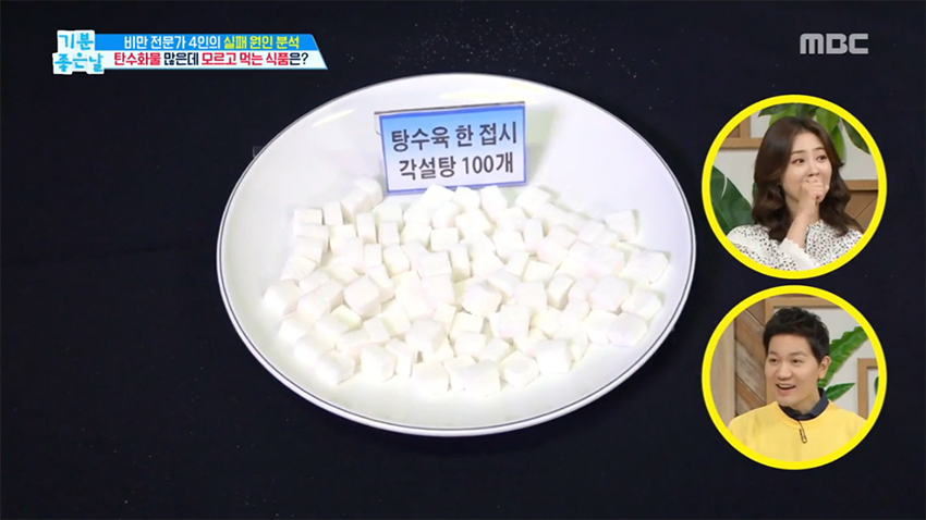 1. 자장면 한 그릇에는 각설탕 21개, 깐풍기 한 접시에는 각설탕 19개, 탕수육 한 접시에는 각설탕 100개가 들어간다.