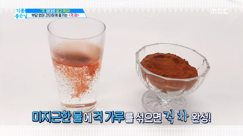 3. 미지근한 물에 걱 가루를 섞으면 걱 차가 완성된다.