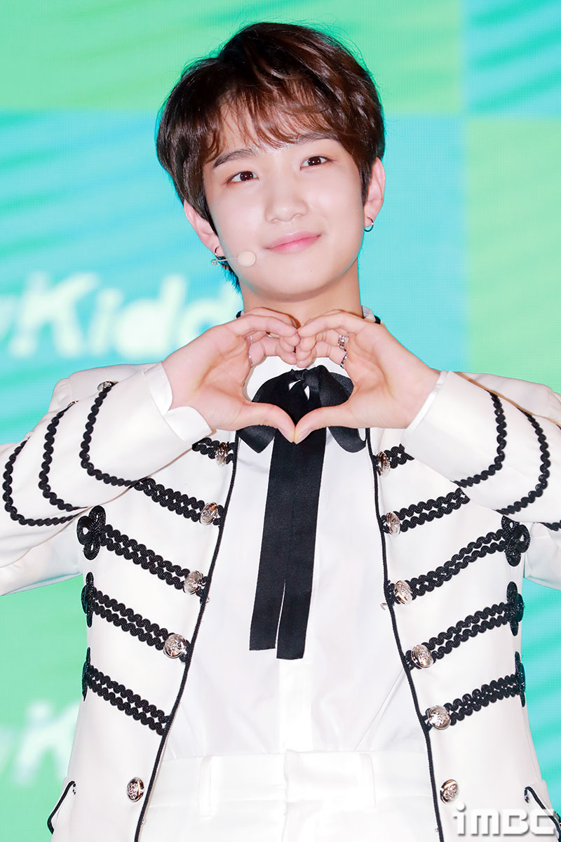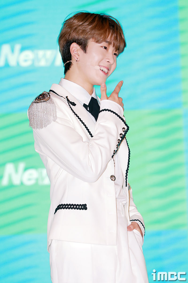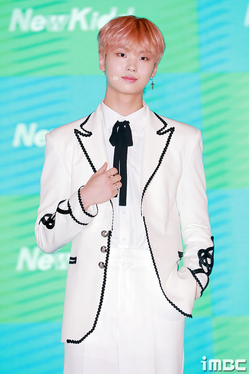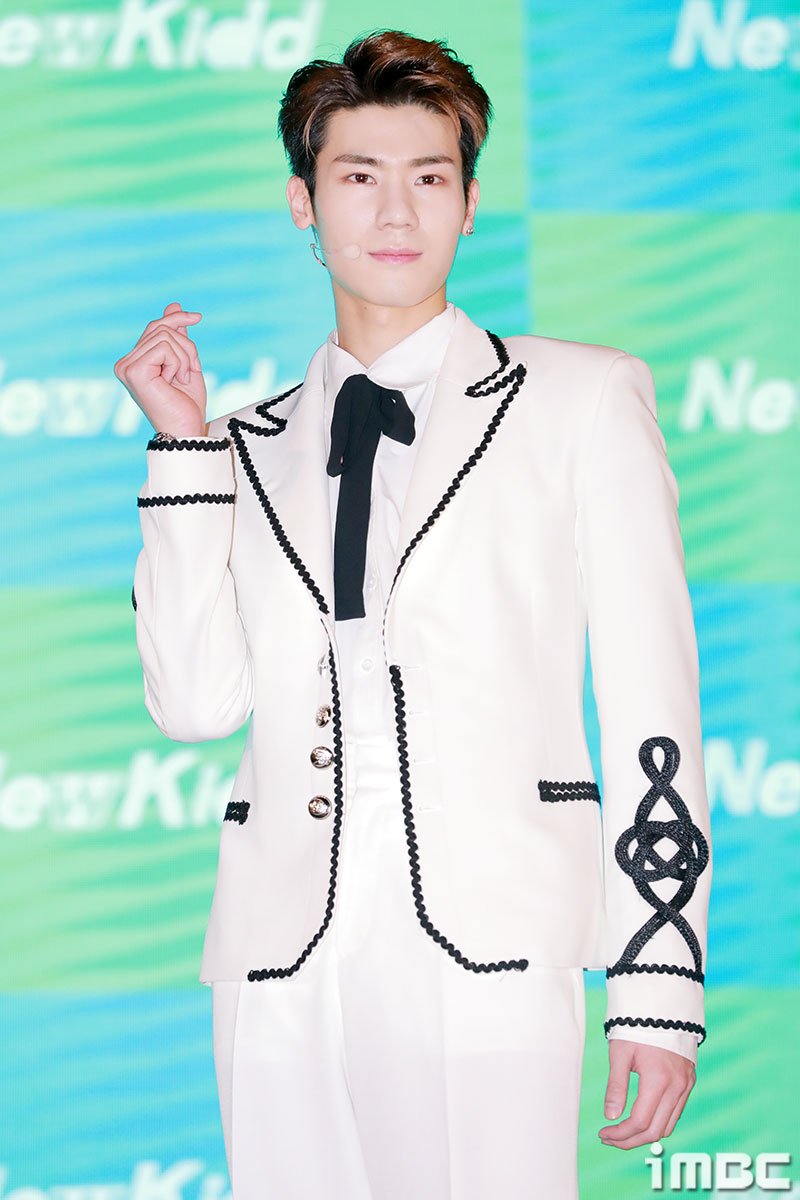 이날 쇼케이스에서 뉴키드가 포토타임을 갖고 있다.