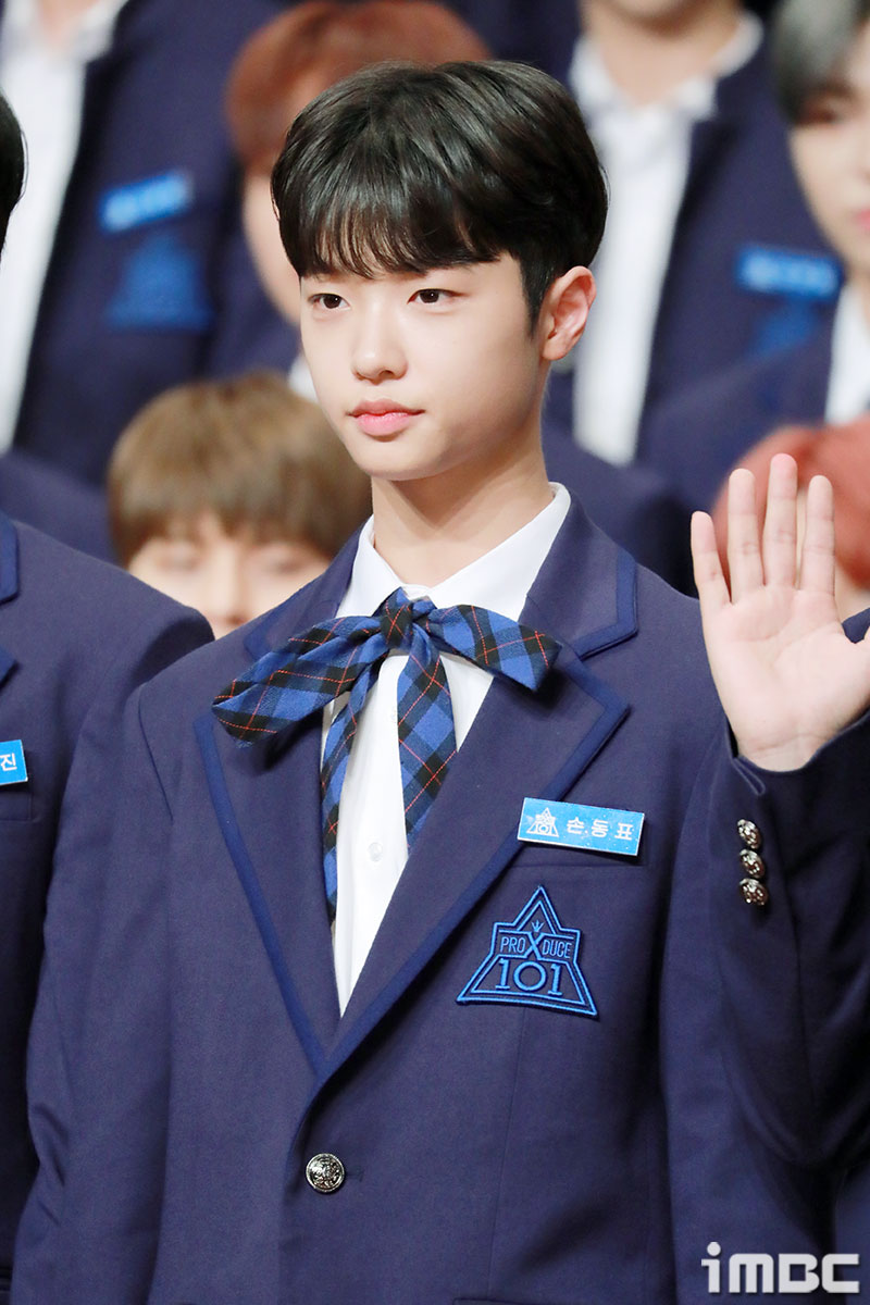 이날 행사에 참석한 연습생 손동표가 포토타임을 갖고 있다.