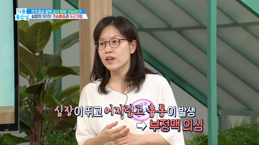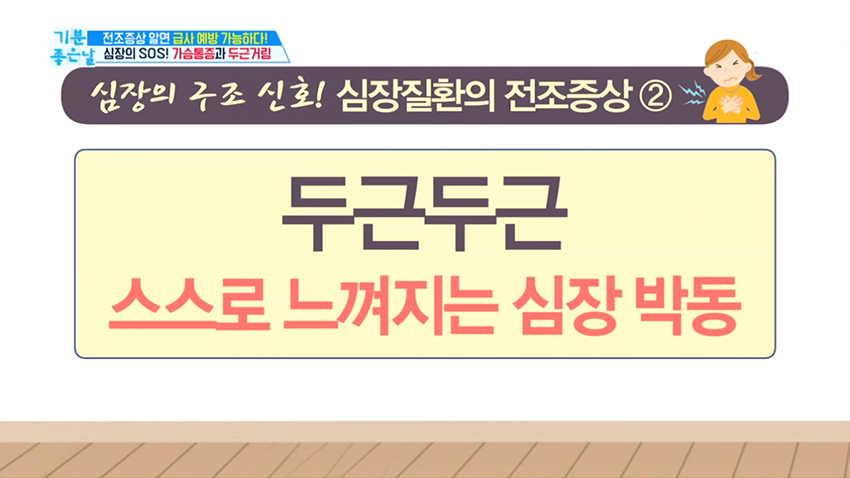 4. 두근두근 스스로 느껴지는 심장 박동으로 어지럽고 흉통이 발생하거나 심장이 뛰는 것이 느껴지면 부정맥을 의심해봐야 한다.