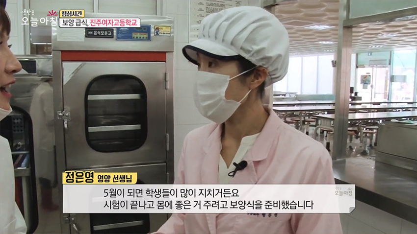 시험이 끝나고 지친 체력을 보충해주기 위해 보양 급식을 제공하는 진주 여자고등학교를 방문했다.