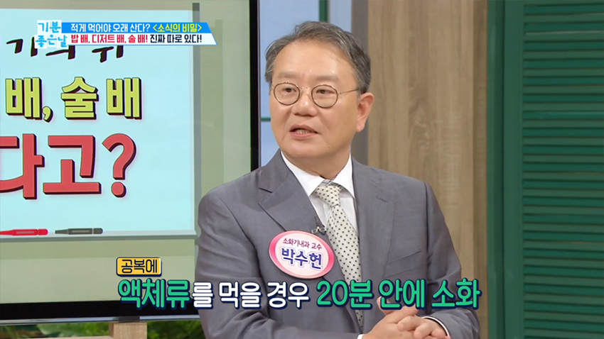 4. 공복에 액체류를 먹을 경우 20분 안에 소화되지만 고형식은 1시간 이상 소요된다.