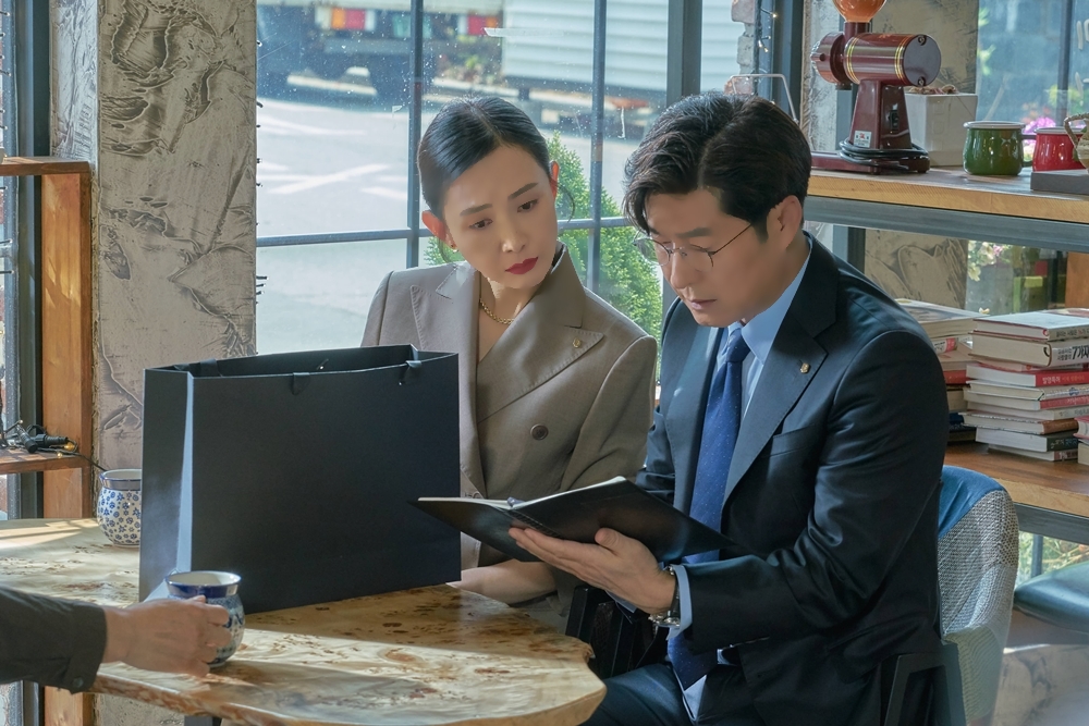 대호와 수지 앞에 앉은 사람은 다름 아닌 전 부행장 육관식. 대호와 수지는 수첩의 내용을 보고 깜짝 놀라 눈을 떼지 못하고 있어 과연 육관식이 건넨 비밀 수첩 속에 어떤 내용이 담겨 있을지 궁금증을 자아낸다.