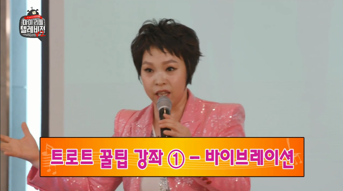 24일 방송된 MBC ‘마이 리틀 텔레비전2’에서는 김구라 장영란 조영구가 속성 노래교실 수업을 들으며 ‘트로트 잘 부르는 비법’을 전수받았다. 노래교실 선생님은 “일단 바이브레이션이 제일 중요하다”며 시범을 보였고, 김구라는 “속성으로 바이브레이션을 만드는 방법 없나”라고 물었다.