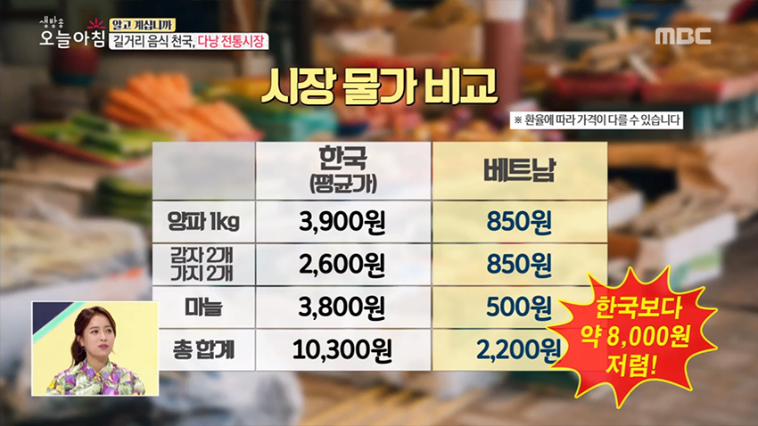 2. 베트남 시장의 물가는 양파, 감자, 가지, 마늘 등을 구매했을 때 한국 보다 4배 이상 저렴하다.