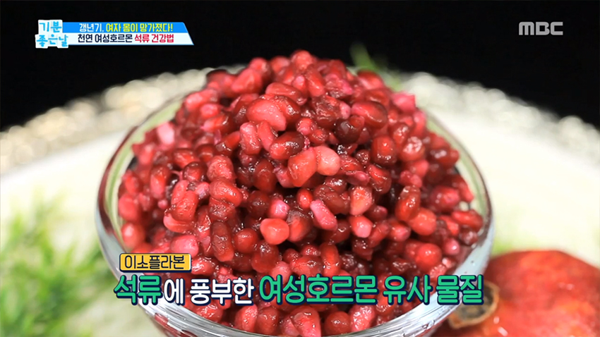 5. 이소플라본은 석류에 풍부한 여성 호르몬 유사 물질로 갱년기에 줄어드는 여성 호르몬을 보완해준다.