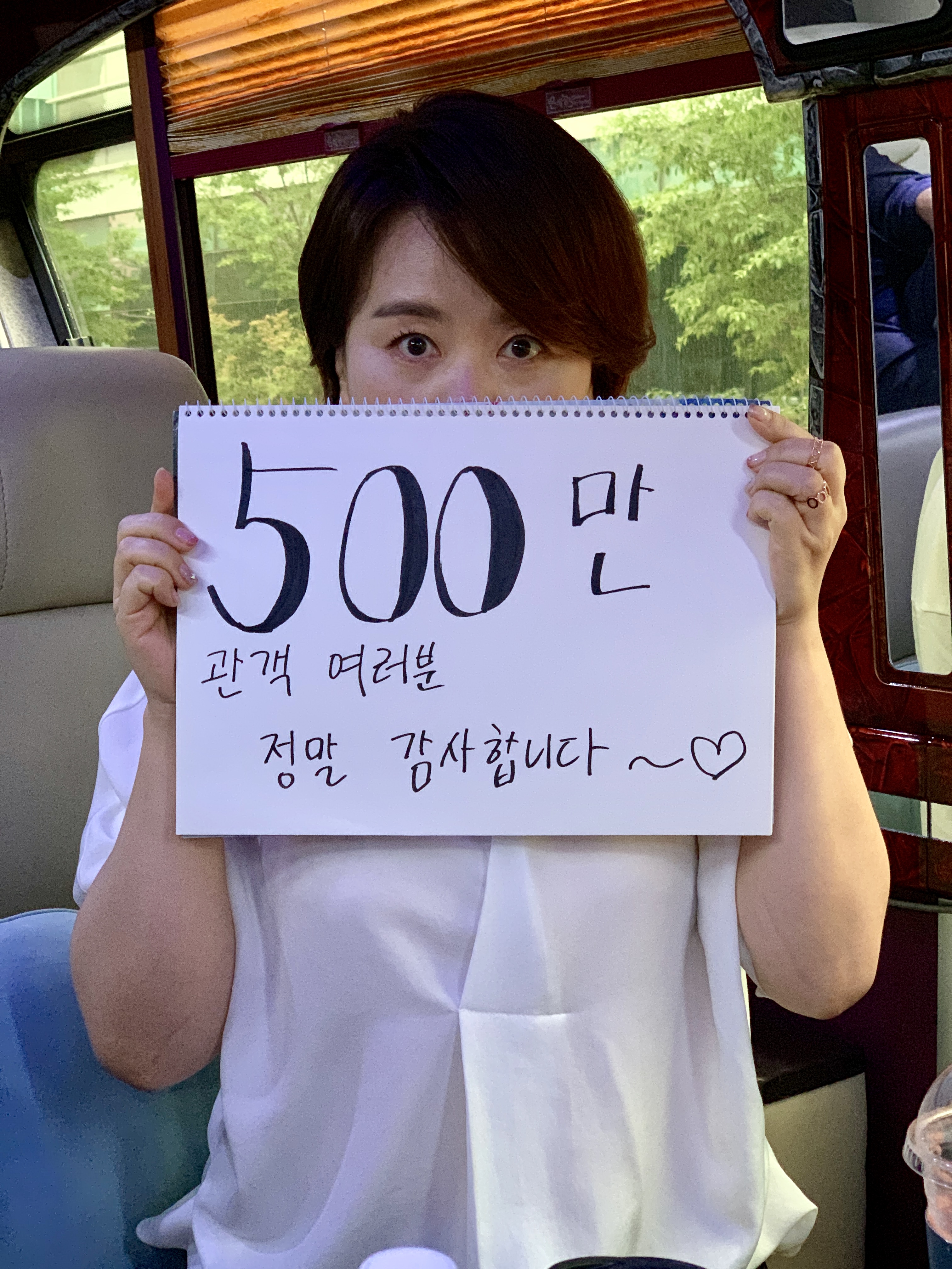 또한, 촬영 일정으로 함께 인증샷을 찍지 못한 ‘박사장’ 역의 이선균은 “500만의 선을 넘어 버렸다!! 감사합니다”라며 감사 소감을 따로 보내왔으며, ‘연교’ 역의 조여정은 “기생충 500만! 정말 감사합니다!!”라는 손편지로 감사의 마음을 전했다. 또한, ‘충숙’ 역의 장혜진은 “500만 관객 여러분 정말 감사합니다”라는 멘트로 관객들에게 감사 마음을 담아냈다.