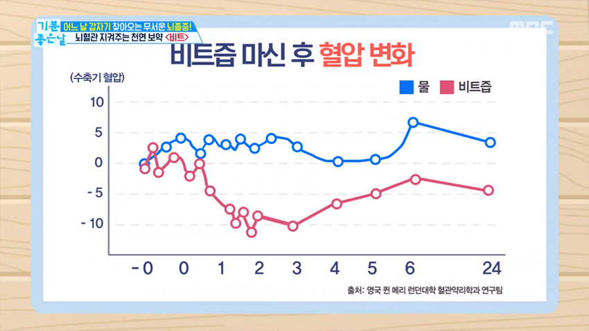 2. 영국의 한 대학에서 고혈압 환자들에게 비트를 섭취시킨 결과 혈압을 낮춰주는 효과가 있었다.