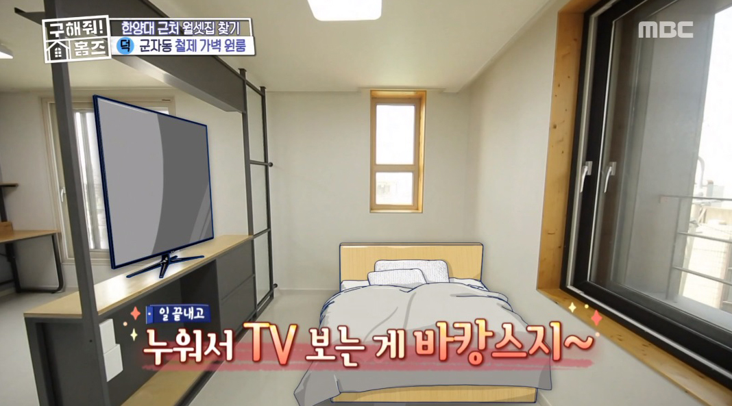 노홍철은 분리된 공간 덕분에 침실에서 티브이를 보며 망중한을 즐길 수 있다는 장점을 어필했다. 특히 창문이 여러 개라 채광도 충분해 김광규는 ‘로열층’이라며 흥분했다.