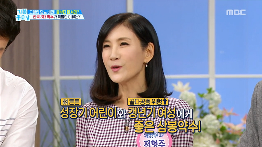 - 뼈를 튼튼하게 해주는 약수로 성장기 어린이와 갱년기 여성에게 좋다.