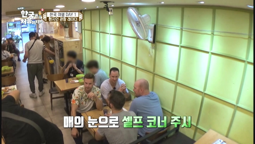 하지만, 들뜬 마음으로 입장한 한국 식당에서 캐나다 친구들은 당황해하는 모습을 보였는데. 자리를 잡은 친구들에게 영어 하나 없는 한국어 메뉴판이 주어졌기 때문. 게다가 원하는 메뉴를 체크해 주문하는 방식에 당황한 친구들을 그림 맞추기를 하듯 메뉴를 찾아 눈치껏 주문을 해야 했다. 친구들의 눈치싸움은 여기서 끝이 아니었는데. 그것은 바로 셀프코너에 있는 김치. 데린은 “내가 김치를 가져와도 되는지 모르겠어.”라고 말하며 마음대로 김치를 담아 오는 것이 예의 없는 행동일까 걱정했고 이에 샘은 “누가 김치 가져가나 내가 봐줄게”라고 말하고는 가게의 손님들을 관찰하기 시작했다.