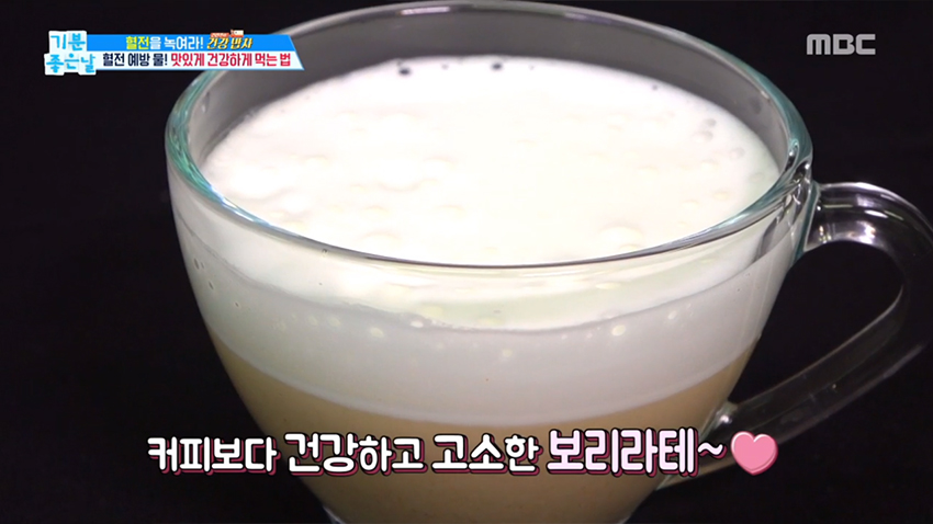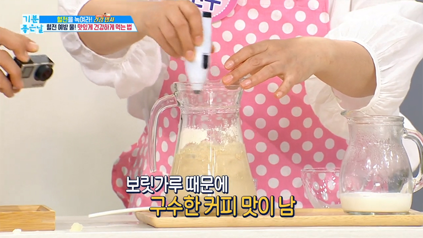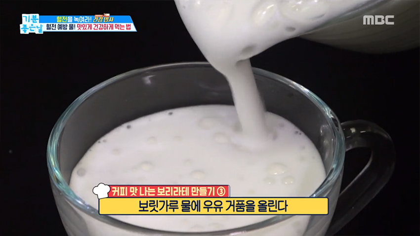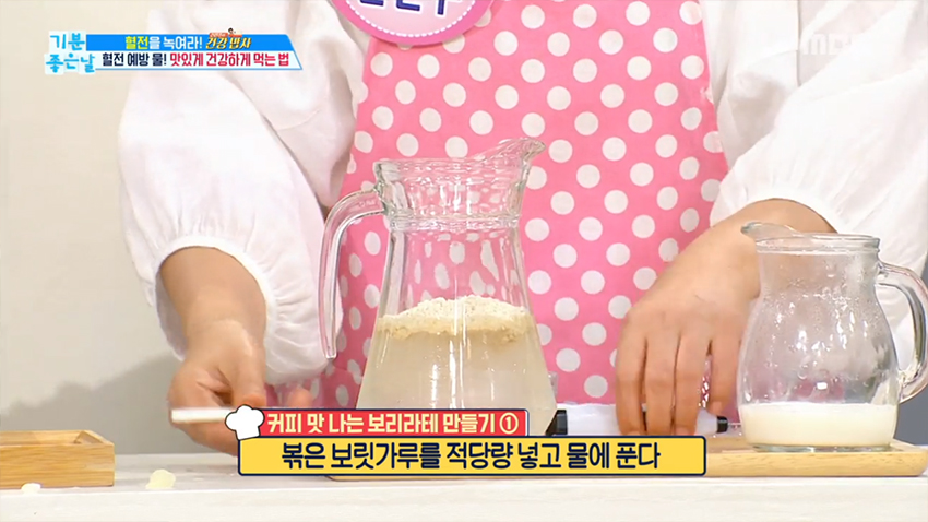 - 볶은 보릿가루를 적당량 넣고 물에 푼다.