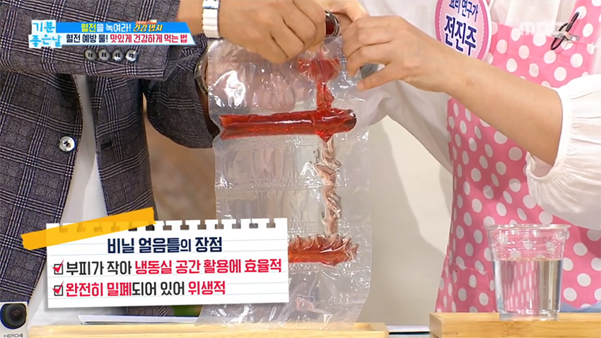 1. 비닐 얼음틀을 이용하여 물을 얼려 먹으면 부피에 대한 부담이 적어 냉동실 공간 활용이 용이하고 완전히 밀폐되어 있어 위생적이다.