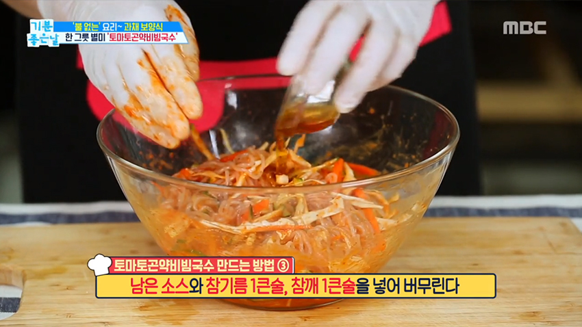 3. 곤약면 400g에 소스를 넣고 버무린다.