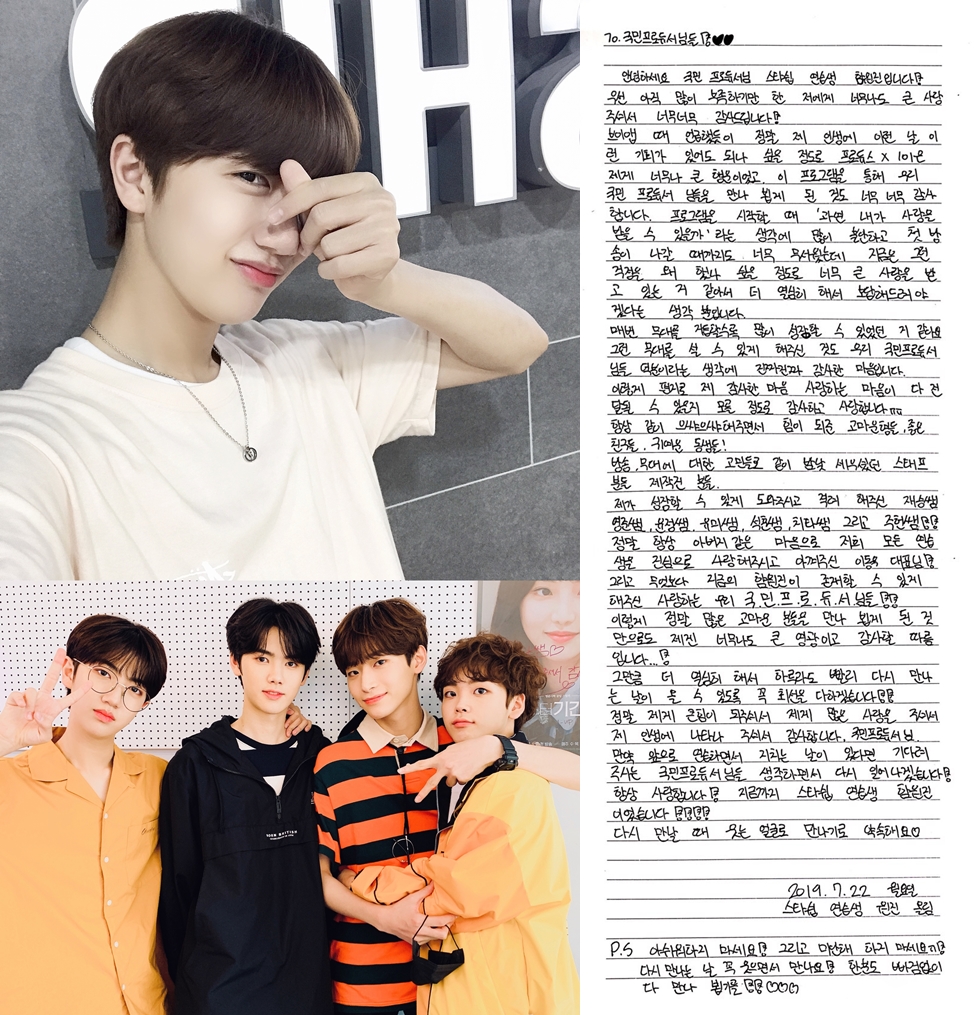 먼저 구정모는 편지를 통해 "마지막 데뷔 평가까지 갈 수 있게 해주신 국민 프로듀서님 정말 감사합니다"라며 "프로듀스 X 101을 하면서 많은 경험을 하고, 기쁜 일 힘든 일도 많았는데 국민 프로듀서님 덕분에 다 행복한 기억으로 남을 것 같습니다"라고 감사 인사를 전했다.