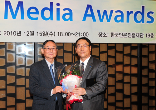 KBS경영진도 올 한해 많은 상을 받았다. 지난 10일 열린 한국언론인연합회가 주관한 <2010 자랑스런 한국인대상>에서 김인규 사장은 경인방송센터설립, 대형스포츠중계권문제 해결 등 공영방송의 현안들을 해결하며 대한민국 대표공영방송의 위상을 정립한 공적이 인정되어 방송언론부문상을 수상했다.