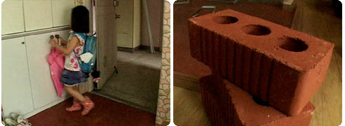물이 흘러 현관을 지저분하게 만드는 우산은 벽돌 한 장이면 해결된다.