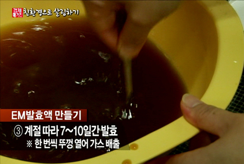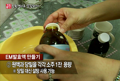 정연씨는 EM 발효액을 직접 만들어 쓴다.