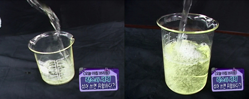 다량의 염소기체가 짧은 시간 안에 발생하기 때문에 위험할 수 있다.