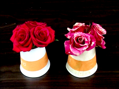 장미를 꽂았던 종이컵 색도 심하게 변했다.