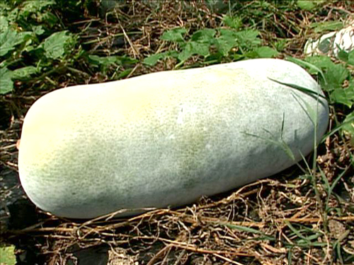 무라고 생각하기에는 너무 굵고, 수박이라고 생각하기에는 길쭉한 신기한 생김새의 동과.