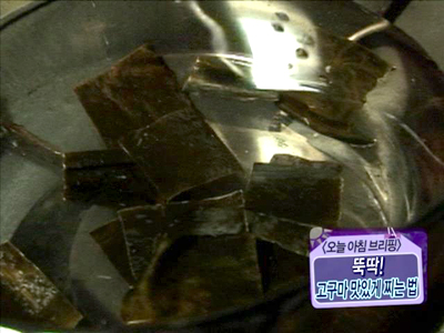 다시마를 넣은 물에는 다시마가 포함한 염화나트륨 등의 염유가 녹아 나오기 때문에
