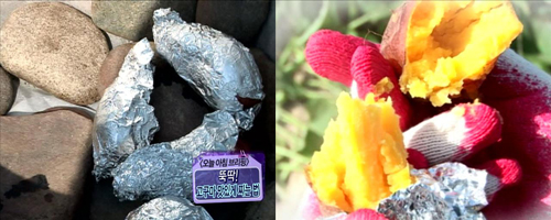자갈로 쪄서 군고구마 맛 내기