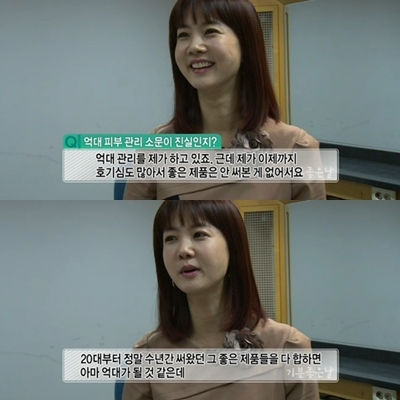 "호기심이 많아서 좋은 제품은 안 써본 게 없다. 20대부터 수년 간 써왔던 그 좋은 제품들을 다 합하면 아마 억대가 될 것 같다."며 '억대 피부 관리' 루머에 대해 입을 열었다.
