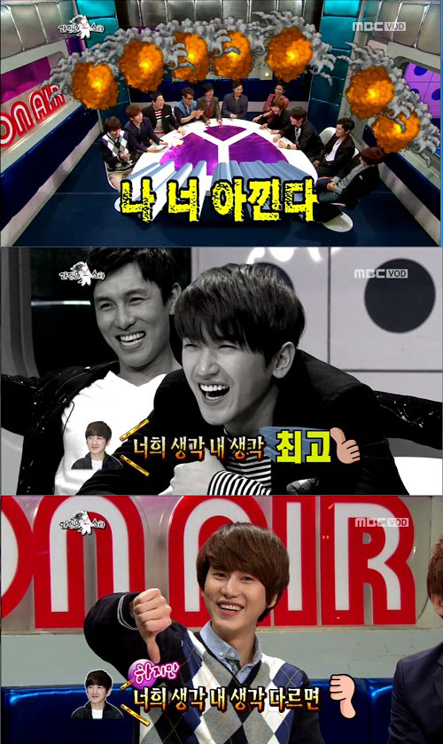이에 규현도 과거에 슈퍼주니어와 이민우와의 에피소드를 얘기했는데 "슈퍼주니어에서 이민우와 닮은 멤버로 알려진 동해가 작곡을 하고 싶다고 하자 '너희 생각 내 생각 똑같아. 너희 생각 내 생각 최고. 너희 생각 내 생각 다르면 (최하)'라며 엄지손가락을 아래로 향하는 제스쳐를 해보였다.”고 전했다.