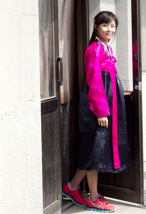 그런데 짠~ 반전 사진. 평소에는 저렇게 편하고 예쁜 운동화를 신고 계신다는!! 꽃분홍 저고리와 너무 어울리지 않나요? 금방이라도 '풉'하고 웃음이 터져 나올 것 같은 표정과 운동화 덕분에 빵 터졌습니다.