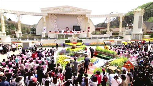 항아와 재하가 '세기의 약혼식'을 한 곳은 경기도 용인시 처인구 포곡읍 전대리 310번지에 위치한 '에버랜드'입니다. 30만명의 방대한 규모에 캐리비안베이, 교통박물관 등 다양한 부대시설이 있는 우리나라 대표 놀이공원인데요. 최근엔 '튤립축제'를 개최해 환상적인 '꽃의 향연'을 즐길 수 있습니다. 항아와 재와 역시 이 튤립축제를 배경으로 약혼식을 했는데요.