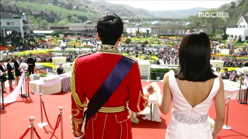 그리고 모습을 드러내는 항아, 그동안 그렇게 '목련꽃같은 녀성'을 외쳤던 항아가 정말 '목련꽃같은 녀성'으로 변신하는 순간이었는데요. 하얀 순백색의 드레스에 수줍은 듯 미소 짓는 항아는 그야말로 '북한교관 김항아'가 아닌 '여자 항아'로 변신했습니다. 이렇게 손을 맞잡은 두 사람, 지금 이 순간만큼은 온 세상이 다 아름다워보이겠죠?